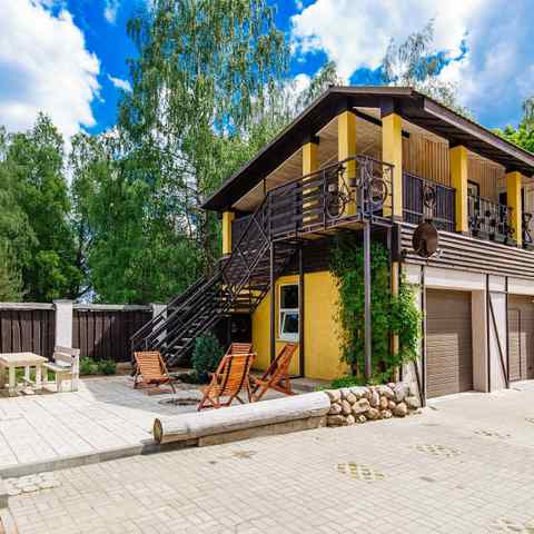 Гости байдарочной агроусадьбы «Щербо-ki» в д. Лавница могут расположиться в просторном мансардном доме. Собраться с друзьями или семьей за столом в теплое время года удобно на террасе.